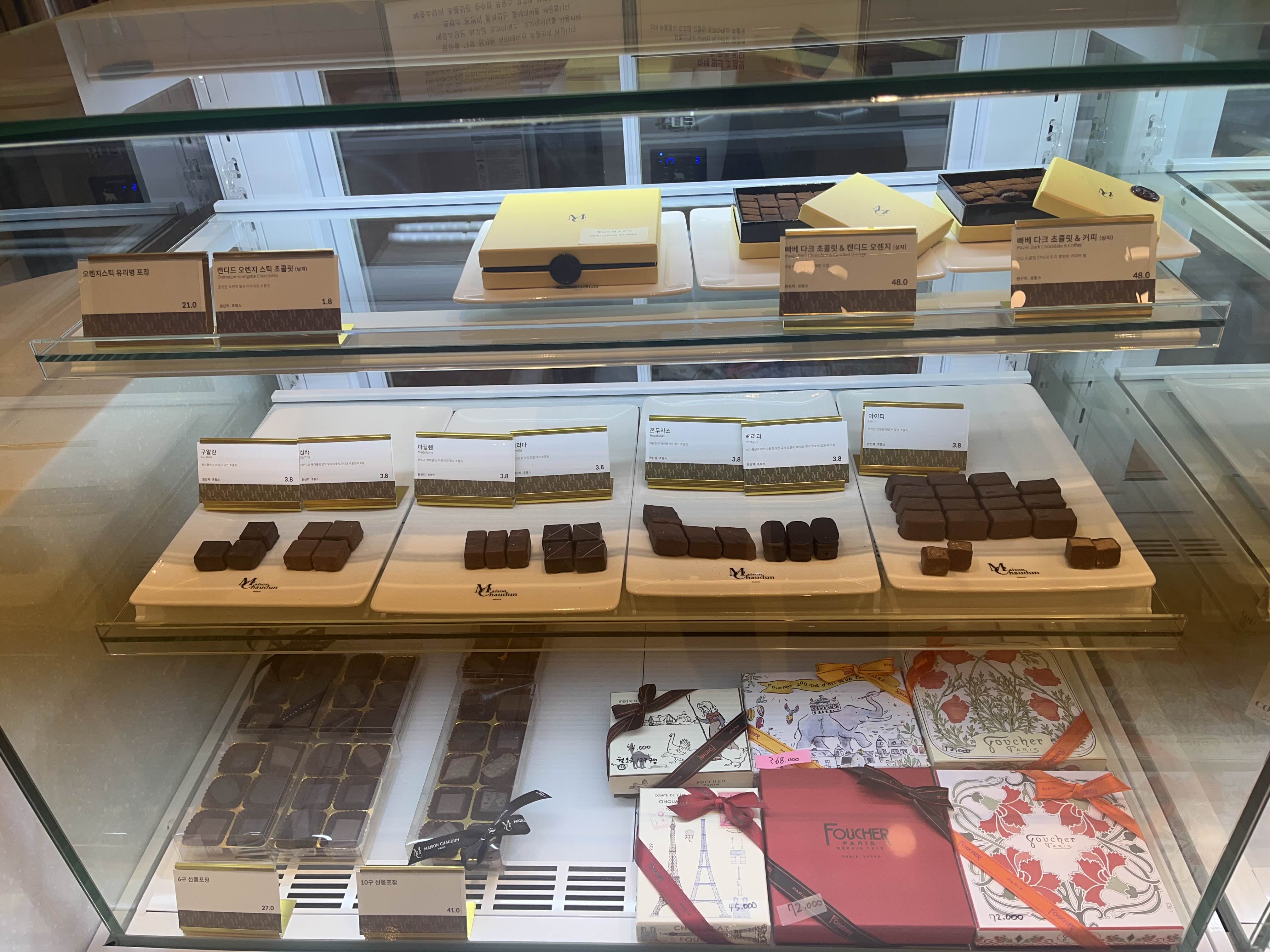 진열장에 진열되어있는 초콜릿들은