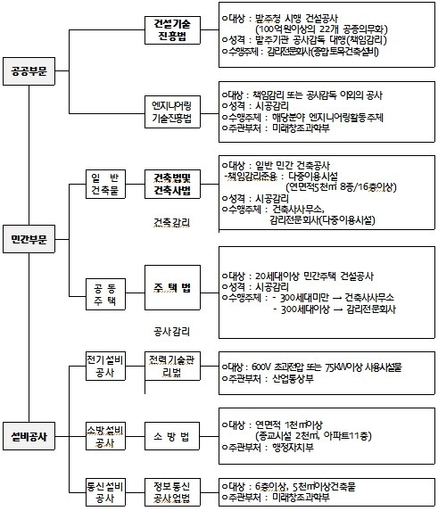 - 공공부문, 민간부문, 설비공사, 분리발주 등으로 구분